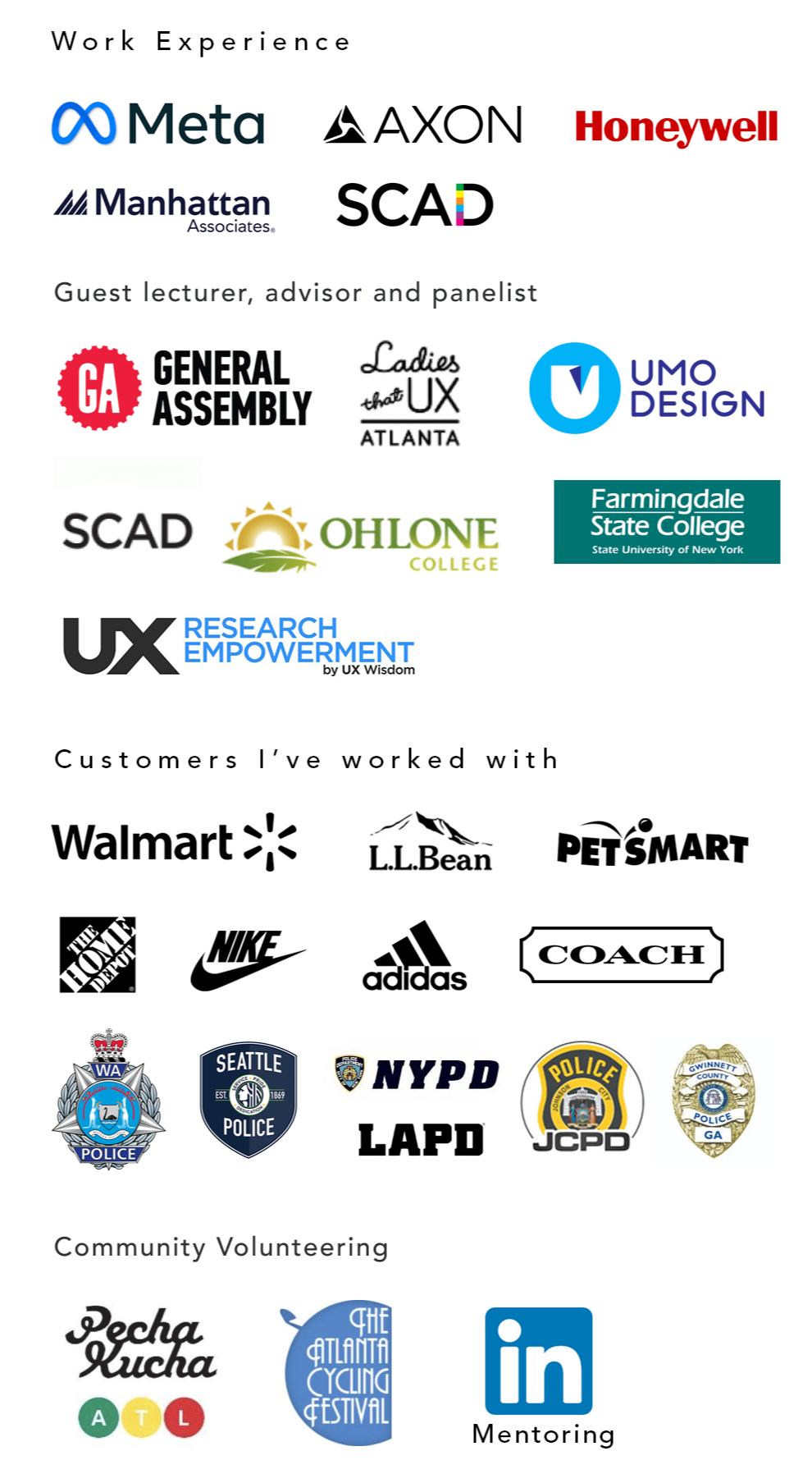 UX lead with 14+ years of expertise in cross-functional industries to deliver user-centered designs, data-driven digital experiences. I’ve partnered with organizations across AI powered enterprise software, public safety, and supply chain domains to create user-centered solutions that solve complex problems, improve data workflows, and drive measurable outcomes through design centric methods.